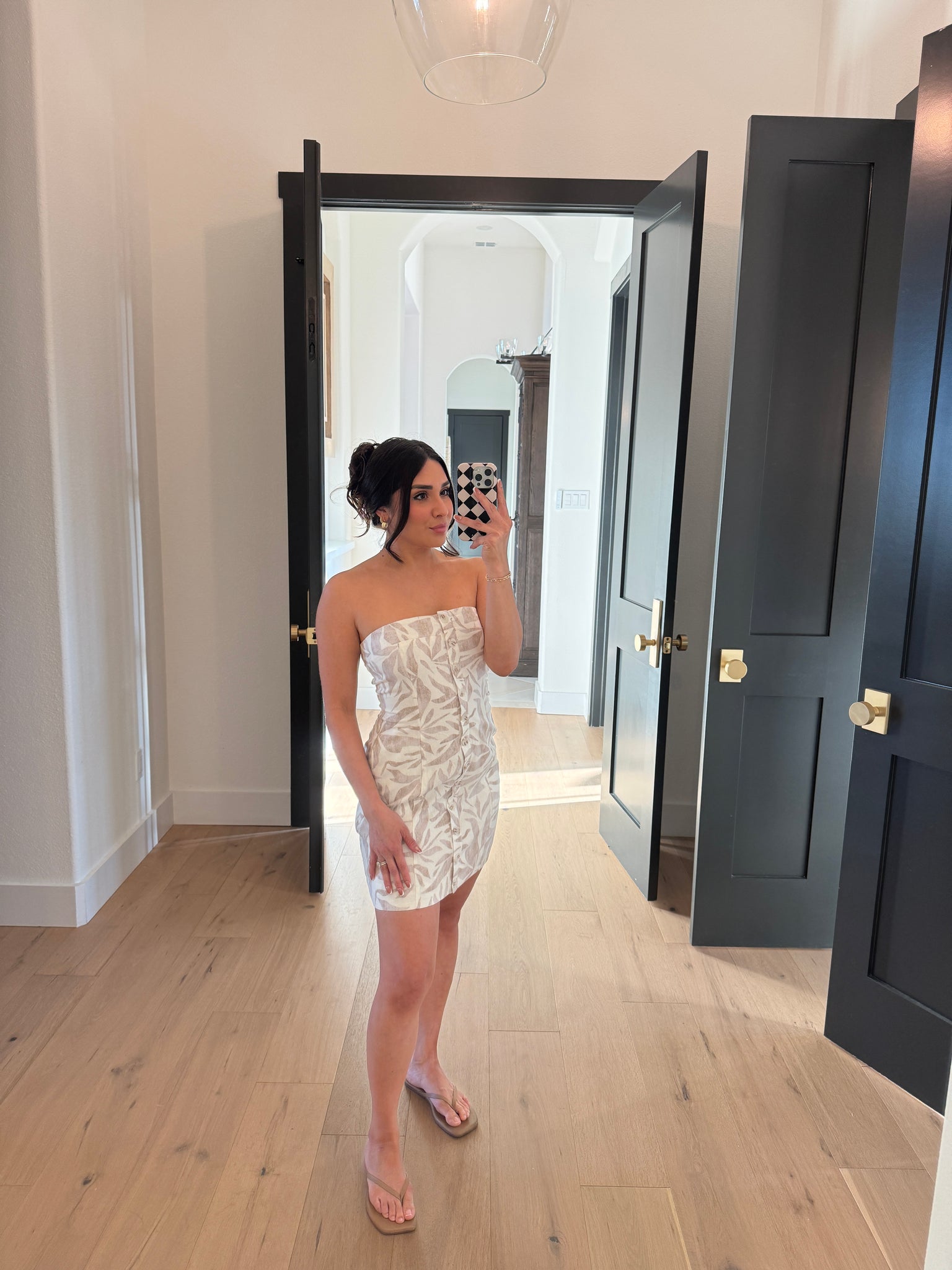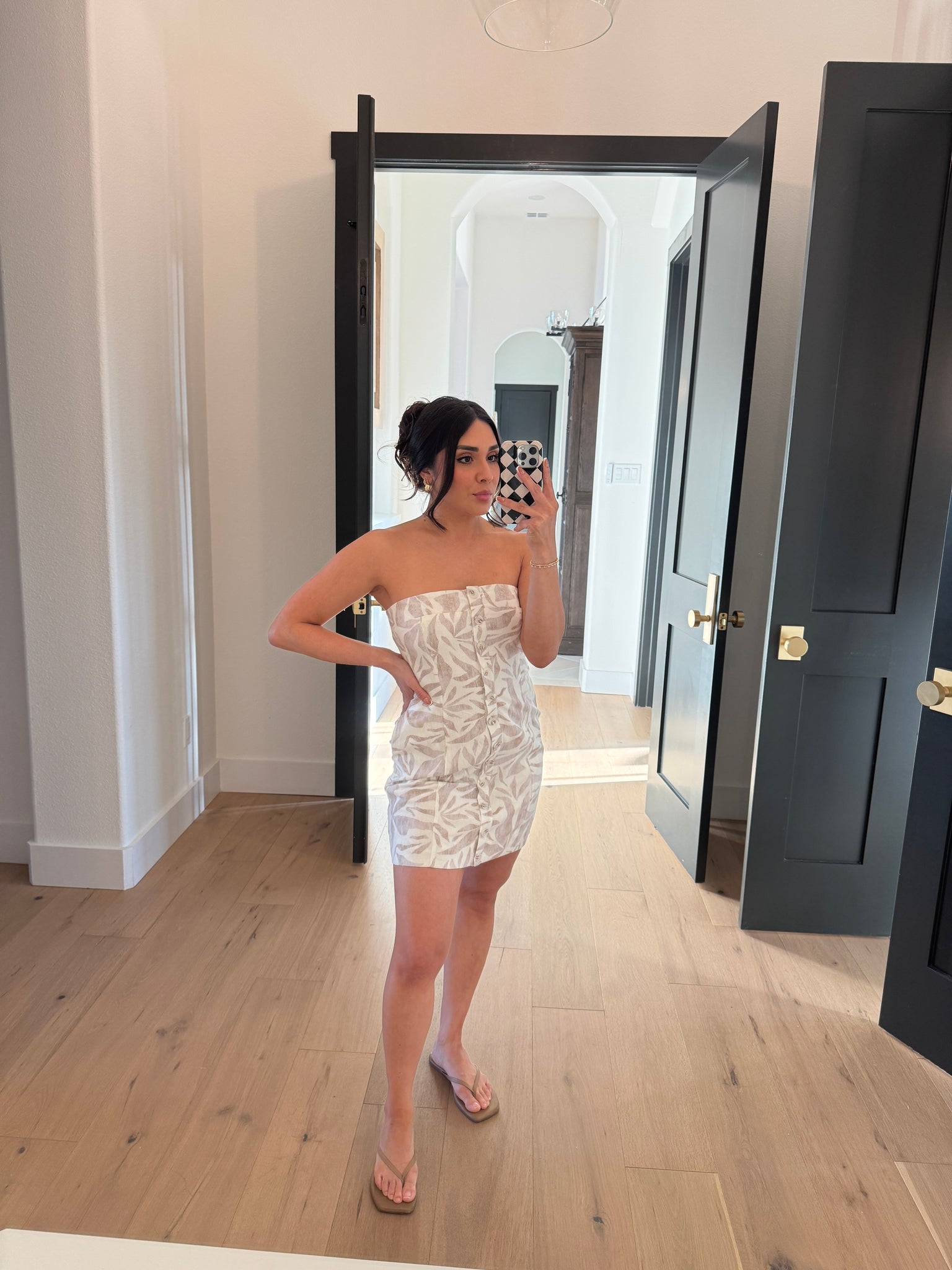 CORALINE BUTTON MINI DRESS | NEUTRAL