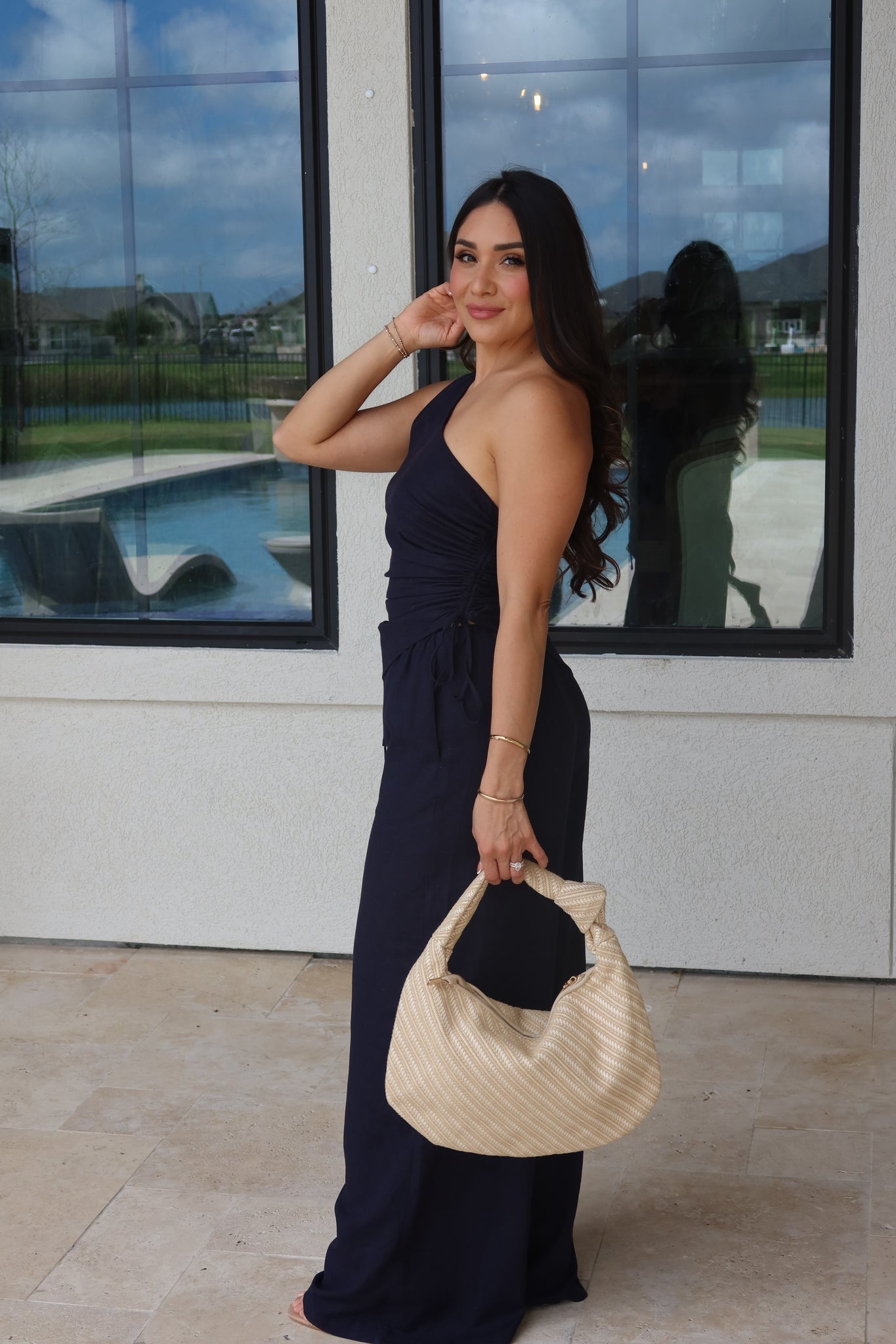 • One shoulder with pleat detail