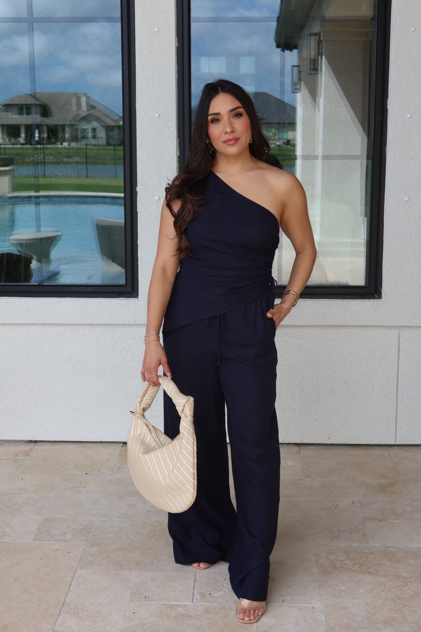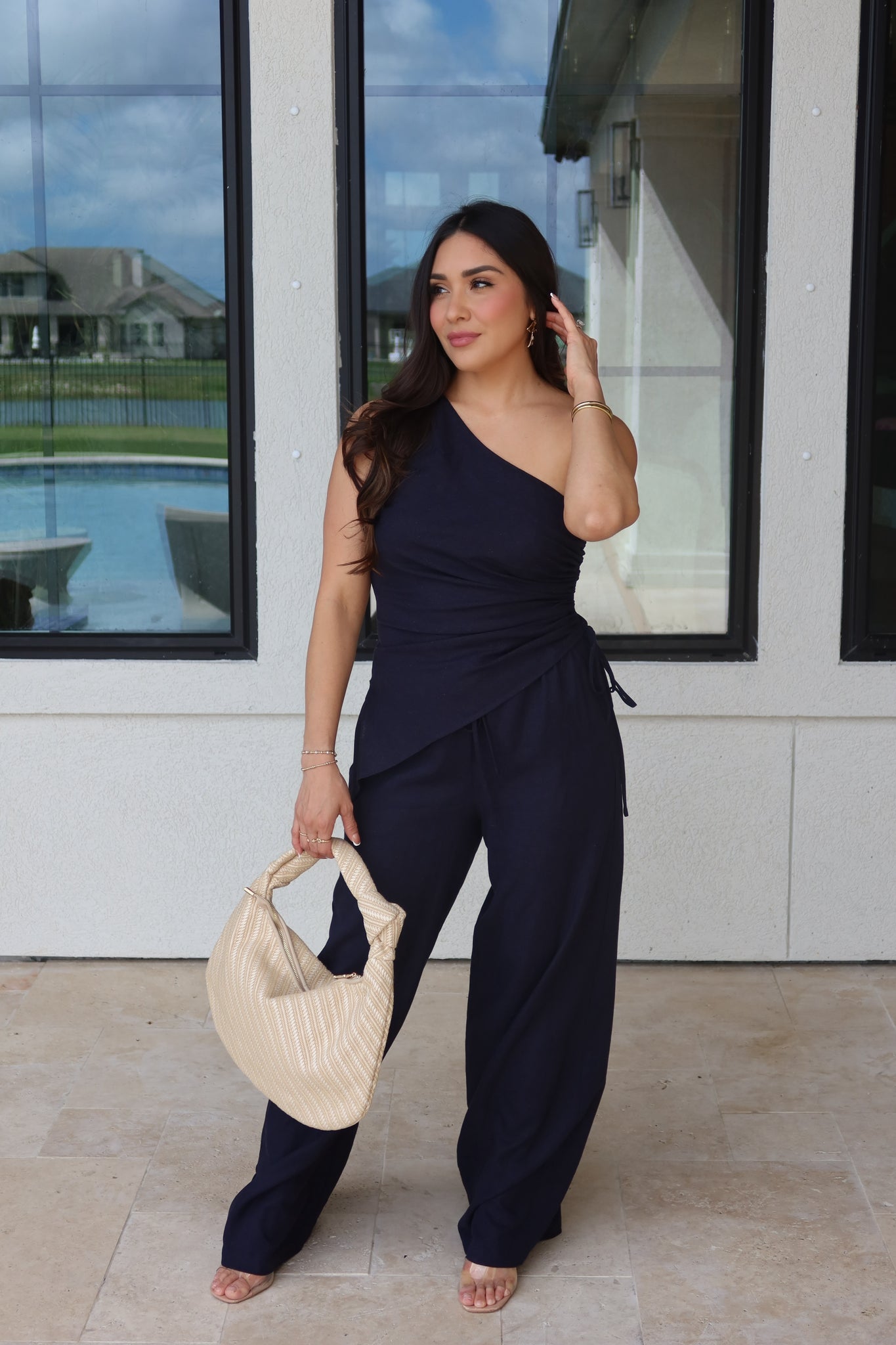 CRUZ ONE SHOULDER RUCHED TOP | NAVY