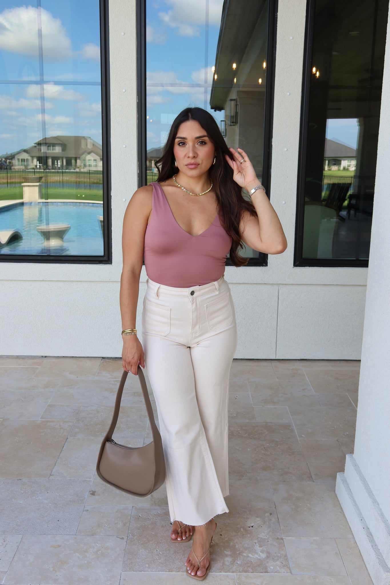 OLLIE FRONT TWO POCKET STRETCH WIDE LEG DENIM JEANS | OATMEAL