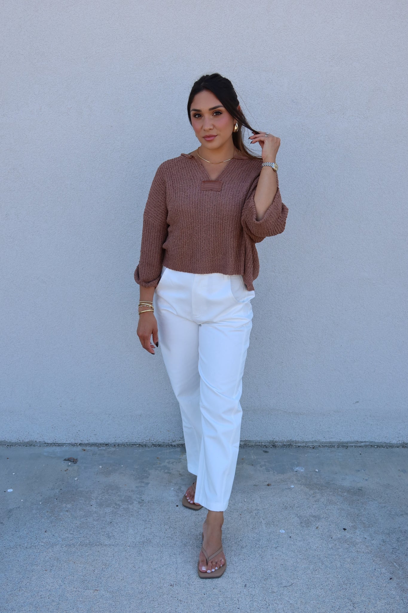 JENNA LIGHTWEIGHT KNIT SWEATER TOP | COCOA