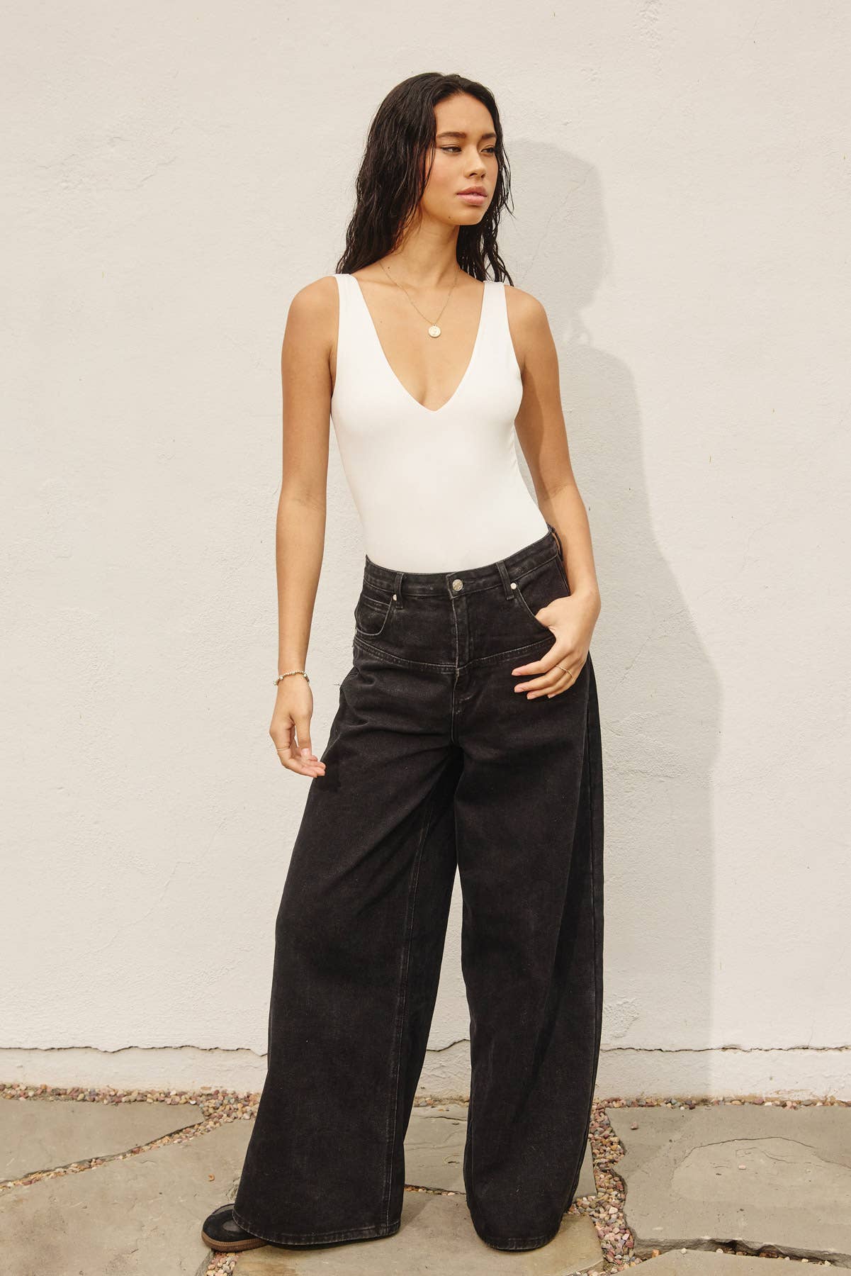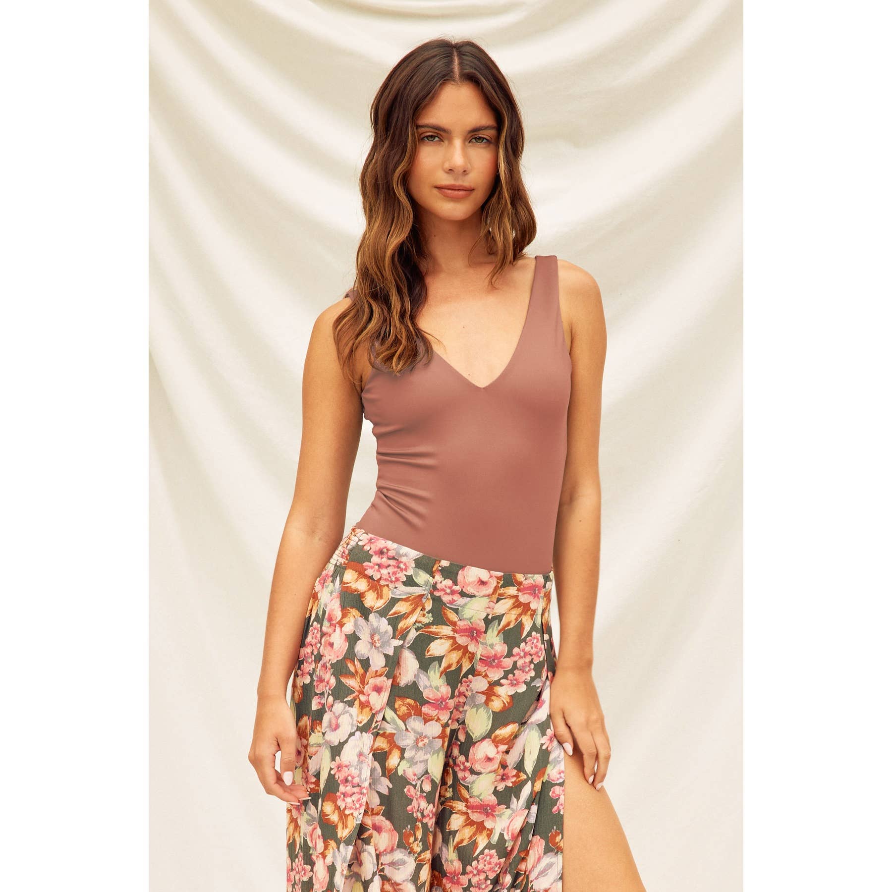 This bodysuit features a supportive, curve-hugging double layered finishing, and double plunging necklines with the back one being a little deeper than the front.