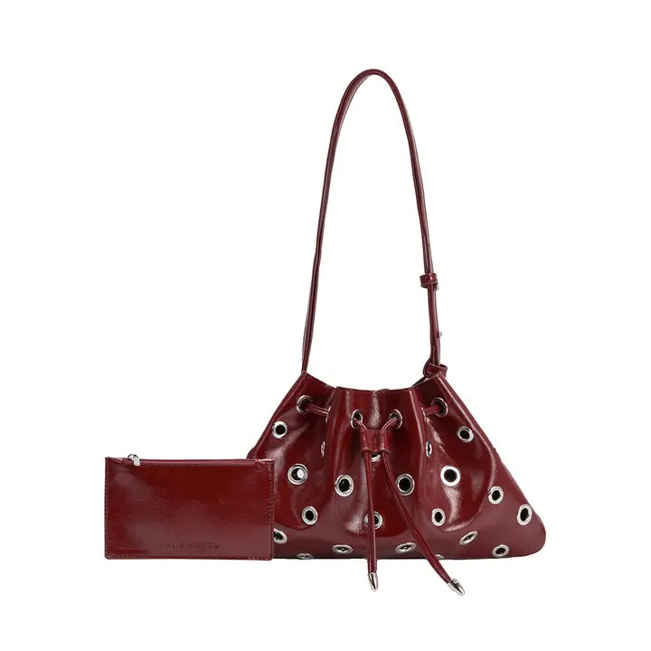 Paloma features bold, eye-catching grommets and a wide bottom for maximum storage. The adjustable strap offers versatile wear, whether slung over your shoulder or worn crossbody. This bag blends fashion and function with ease, perfect for everyday essentials or a night out!