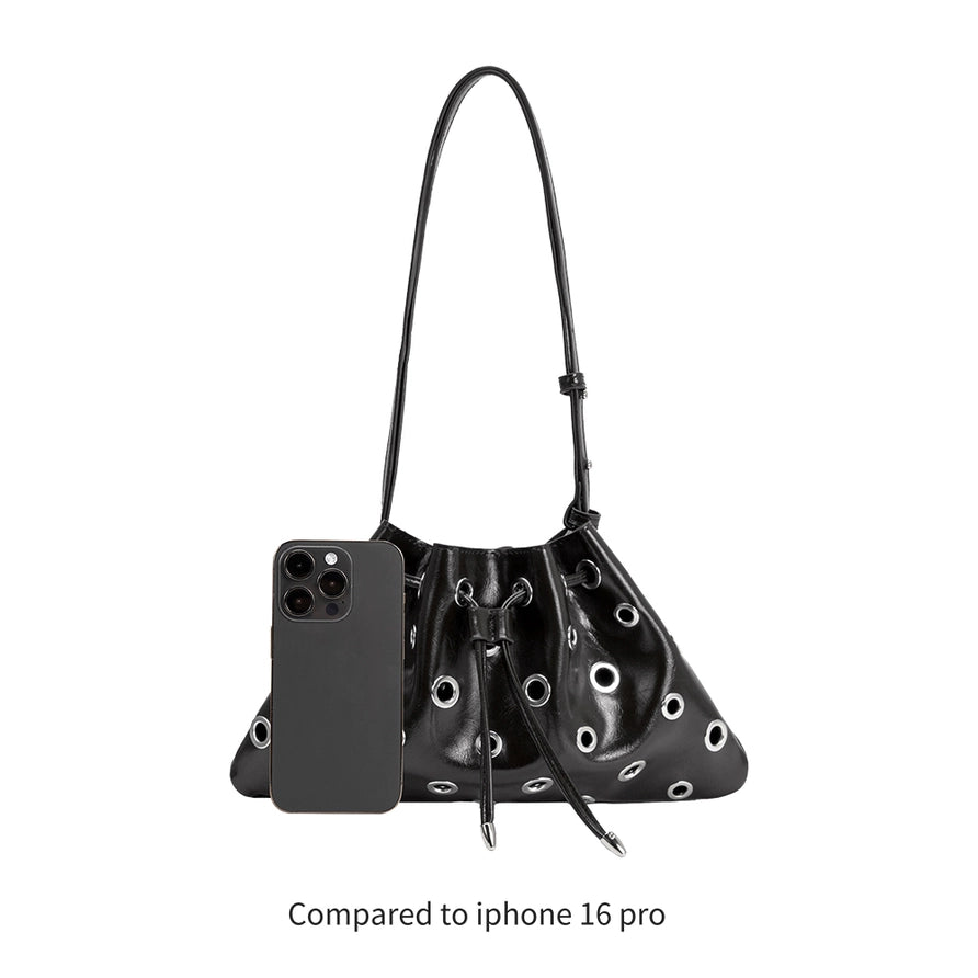 Paloma features bold, eye-catching grommets and a wide bottom for maximum storage. The adjustable strap offers versatile wear, whether slung over your shoulder or worn crossbody. This bag blends fashion and function with ease, perfect for everyday essentials or a night out!